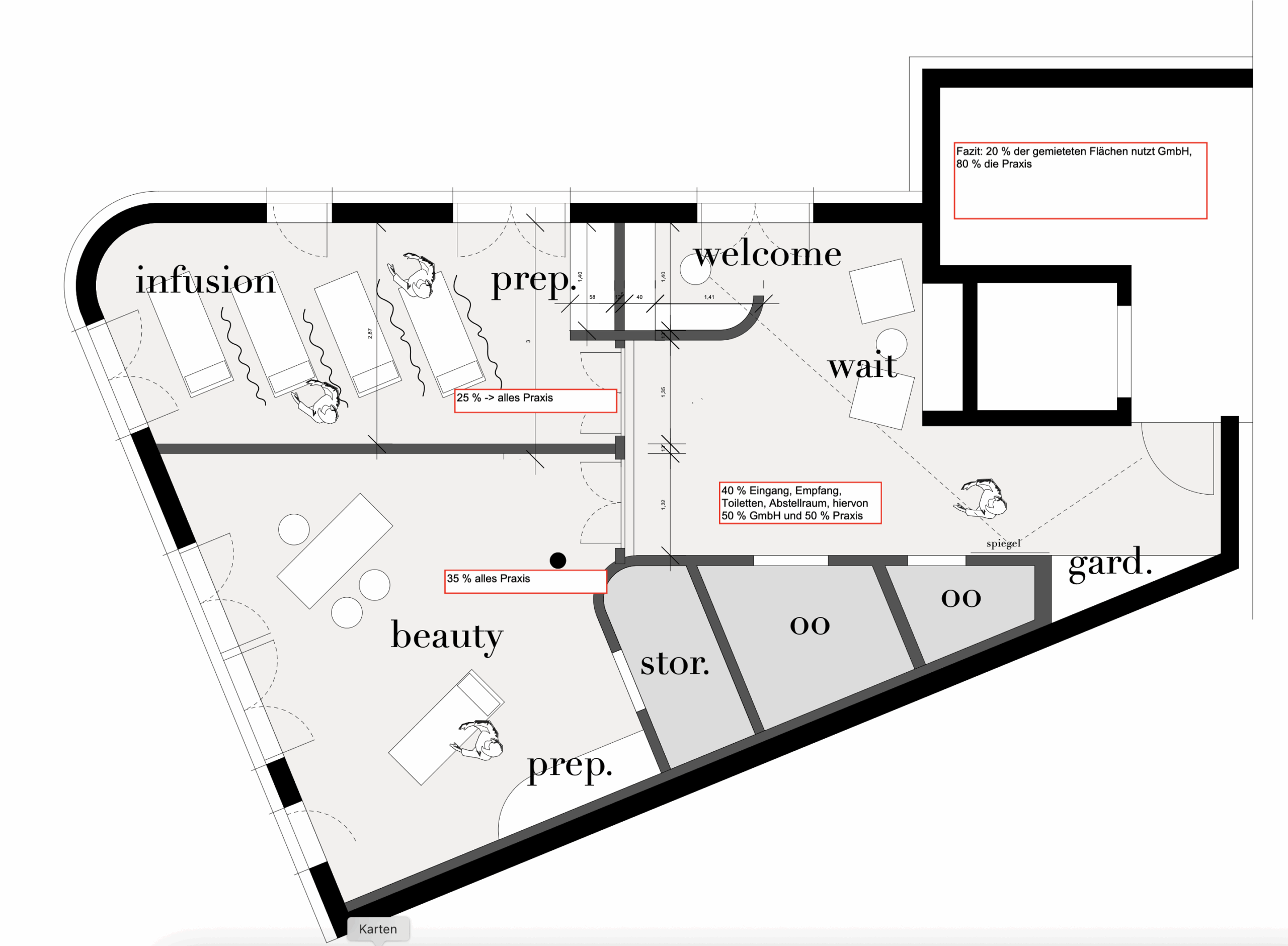 Die Räumlichkeiten eignen sich hervorragend als Praxis oder Bürofläche und sind bereits vorbereitet für einen reibungslosen Start. Der Boden ist hochwertiges Parkett, die Räume sind lichtdurchflutet und freundlich gestaltet. Für eine flexible Nutzung sind sechs Bodentanks mit EDV- und Stromversorgung installiert. Zusätzlich stehen am Haus Parkmöglichkeiten zur Anmietung bereit. Die Infrastruktur umfasst eine beeindruckende Glasfaser-Anbindung von 250.000 Mbit im Haus, ideal für moderne Arbeitsabläufe.